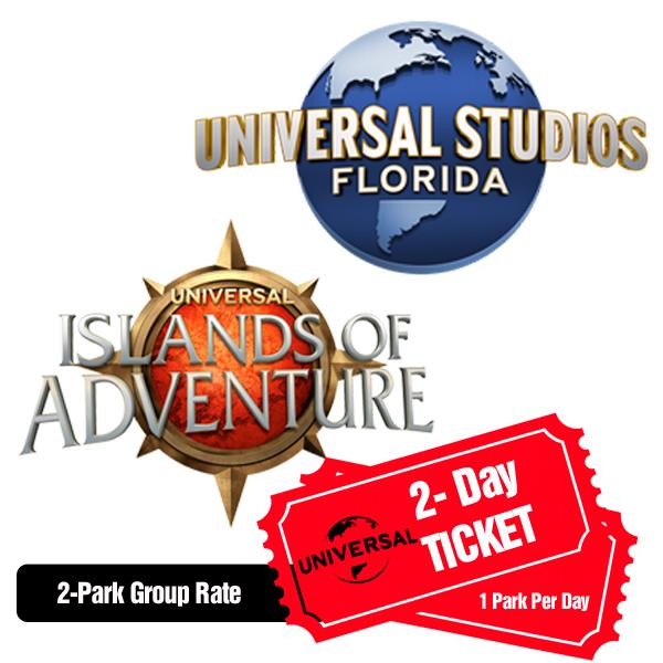 Valid for One Guest Admission for two single days to either/or Universal Orlando theme parks Universal Studios Florida and Islands Of Adventure on separate days. Not valid for 2 park access on the same day and does NOT INCLUDE The Hogwarts Express. Valid for one park per day for 2 separate days.
