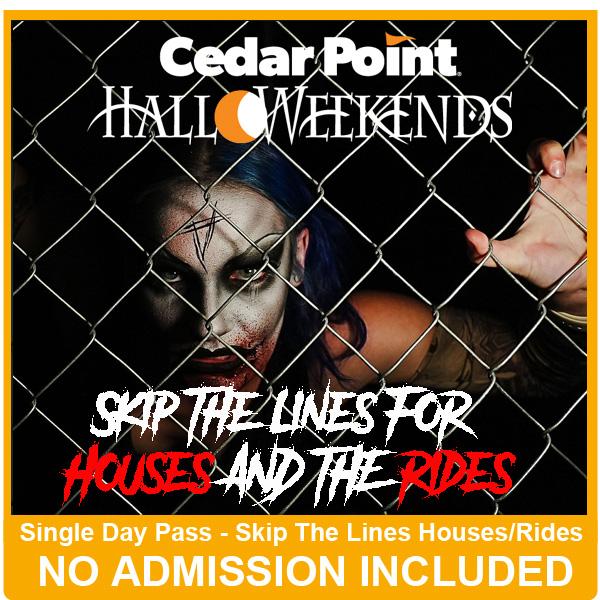 Park admission, haunted house admission and parking not included. Passes are non-refundable, all sales are final. No rainchecks or reissues due to acts of God or inclement weather. Some rides may be closed during your visit to the park, that are out of our control. Please check CedarPoint.com for up to date ride closures. Park hours vary, check Cedar Points website for the date of your visit.